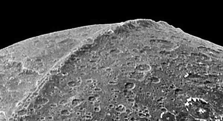 Αλλά το πιο ενδιαφέρον χαρακτηριστικό  αυτού του φεγγαριού που έχει φέρει σε αμηχανία τους επιστήμονες είναι μια παράξενη κορυφογραμμή που έχει το διπλάσιο  ύψος του Έβερεστ καθώς και αρκετοί κύκλοι στη μέση του Ιαπετού. Δεν υπάρχουν βιώσιμα γεωλογικά μοντέλα που να εξηγούν τα 12 μίλια πλάτους, 12 μίλια ύψους και 800 μίλια μήκους αυτού του ορεινού τείχους. Λένε ότι αν βρισκόμασταν κοντά σε αυτό το απίστευτο τερατούργημα, ο όγκος του θα έπιανε το μισό του ουρανού. Αυτό είναι το μόνο μέρος στο ηλιακό μας σύστημα που  έχει ανακαλυφθεί μια κορυφογραμμή όπως αυτή.
