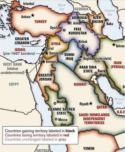 Αυτός είναι ο χάρτης, που απεικονίζει την επανασχεδιαζόμενη και αναδιαρθρωμένη “Νέα Μέση Ανατολή”, η οποία και έχει αναγνωριστεί ως τέτοια απο όλους πλέον τους εμπλεκόμενους σε αυτό.