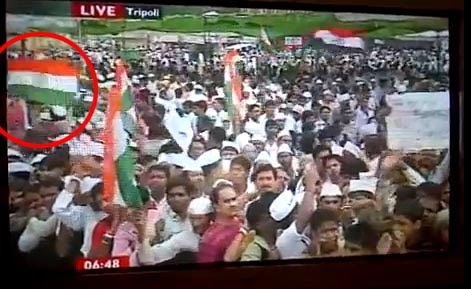 ότι ο θεατής παρατηρεί επί 50 δευτερόλεπτα ότι οι τρίχρωμες σημαίες είναι σημαίες της Ινδίας και οι “αντάρτες” φυσιογνωμικά ομοιάζουν με Ινδούς παρά σε πολίτες της Λιβύης… Ο νοών νοήτω! ΑΡΗΣ ΑΡΙΩΝ