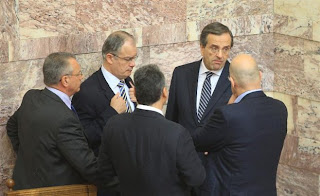 Η Νέα Δημοκρατία εκτιμά ότι ο Πρωθυπουργός, τον οποίο την Τετάρτη στην Κοινοβουλευτική Ομάδα, ο πρόεδρος του κόμματος κ. Αντ. Σαμαράς χαρακτήρισε τυχοδιώκτη, πρέπει να φύγει πάση θυσία.