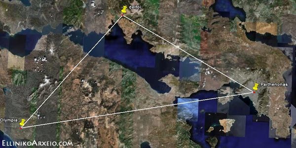 Αλλά ας δούμε κάποια στοιχεία. Αρκετά γνωστό είναι το ισοσκελές τρίγωνο της Ακρόπολης της Αθήνας, με τον ναό του Ποσειδώνα στο Σούνιο και τον ναό της Αφαίας Αθηνάς στην Αίγινα με απόσταση 242 στάδια. Αν ήταν μόνο αυτό θα μπορούσε να χαρακτηριστεί σύμπτωση αλλά έχουμε πάρα πολλά παρόμοια τρίγωνα για να χαρακτηριστούν απλά συμπτώσεις.
