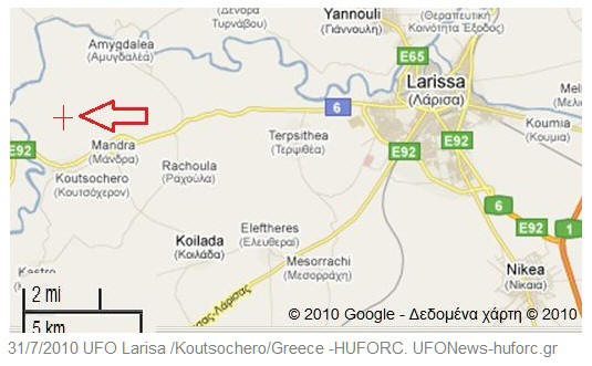 31/7/2010 Άγνωστα ιπτάμενα αντικείμενα στην Λάρισα – Πολλαπλές εμφανίσεις άγνωστων ιπταμένων αντικείμενων παρατηρηθήκαν την προηγουμένη εβδομάδα στη ευρύτερη περιοχή της Λάρισας. Οι πρώτες παρατηρήσεις έρχονται από 2 τουλάχιστον αυτόπτες μάρτυρες, εμπείρους παρατηρητές εναερίων στόχων και αφορούν άγνωστο φωτεινό τριγωνικού αντικειμένου, που “πλανιόταν “κοντά στο χωριό Κουτσοχερον. Οι αυτόπτες μάρτυρες αναφέρουν ότι το άγνωστο αντικείμενο ήταν σαν ένα τρίγωνο με ένα κίτρινο φώς επάνω και πολλαπλά φώτα από κάτω. Ο ένας μάρτυρας ανέφερε ότι μπόρεσε και παρακολούθησε το αντικείμενο με μικρό τηλεσκόπιο όπου εντόπισε περισσότερες λεπτομέρειες που έμοιαζαν σαν έντονες γλώσσες φωτιάς στο κάτω μέρος του αντικειμένου. Οι ξεχωριστοί αυτόπτες μάρτυρες αναφέρουν ότι το άγνωστο ιπτάμενο αντικείμενο έκανε ελιγμούς σαν να “σκάναρη” την στρατηγική περιοχή του Κουτσοχέριου. Το δεύτερο περιστατικό αναφέρετε σε ταχύτατο διερχόμενο “πούρο” αντικείμενο που παρά την ταχύτητα του κατορθώθηκε να εντοπιστεί έστω για λίγο .Ο αυτόπτης μάρτυρας έμπυρος σε εναέριες παρατηρήσεις μαχητικών αεροσκαφών, μπόρεσε να εντοπίσει το μακρύ αντικείμενο προτού χαθεί. Ο μάρτυρας αναφέρει ότι είναι κατάπληκτος με αυτό που είδε και ότι δεν έχει ξαναδεί κάτι τέτοιο, παρότι είναι το επάγγελμα του τα αεροσκάφη.