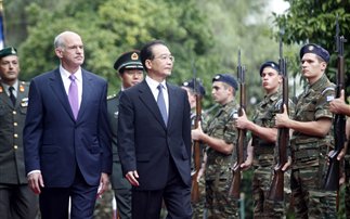 O πρωθυπουργός Γ. Παπανδρέου, υποδεχόμενος τον πρωθυπουργό της Κίνας Ουέν Τζιαμπάο, που πραγματοποιεί επίσημη επίσκεψη στη χώρα μας, ανέφερε ότι προσβλέπει σε περαιτέρω ενδυνάμωση μιας πάρα πολύ θετικής σχέσης μεταξύ των δυο χωρών. Αντίστοιχα και ο κ. Τζιαμπάο δήλωσε ότι είναι πεπεισμένος ότι με την επίσκεψή του στην Ελλάδα οι διμερείς σχέσεις και οι συνεργασίες σε όλους τους τομείς θα εμβαθυνθούν ακόμη περισσότερο.
