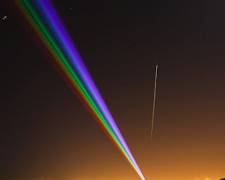 Τα ίχνη του μετεωρίτη δίπλα στην προβολή των χρωμάτων του ουράνιου τόξου. Η φωτογραφία είναι του Mike Ridley (http://www.flickr.com/photos/fellwalker1/6804171078/)