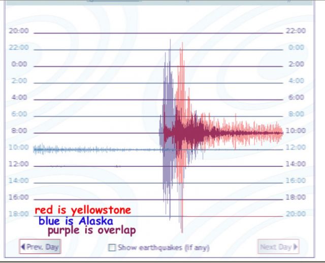 Το δεύτερο διάγραμμα δείχνει την αντίδραση του Yellowstone στον 7,5 Σεισμό στην Αλάσκα.