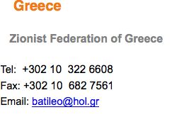 Στην σχετική ιστοσελίδα, δεν παρέχονται περισσότερες πληροφορίες, καθώς αυτή είναι…υπό κατασκεύη (;). Με μια αναζήτηση όμως για την  Zionist Federation of Greece (δείτε εδώ κι εδώ), βρίσκουμε διευθύνσεις, τηλέφωνα και ονόματα υπευθύνων!!!