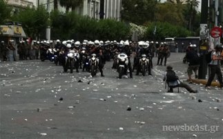 Την ίδια ώρα δικυκλιστές της ομάδας ΔΙΑΣ που κατευθύνονταν από τη Βασ. Σοφίας προς την πλατεία Συντάγματος προκάλεσαν τους διαδηλωτές, σχηματίζοντας με τα δάχτυλά τους το σήμα της νίκης.