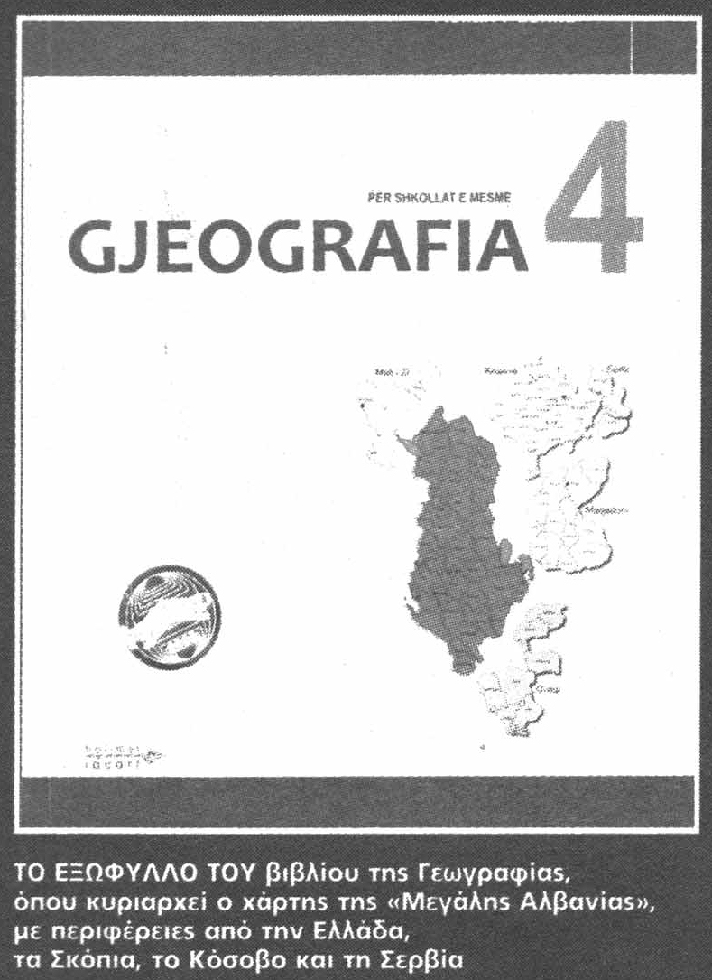 Οι συγγραφείς του βιβλίου υποστηρίζουν πως η Ελλάδα έχει πραγματοποιήσει «εθνοκάθαρση» με στόχο τον αφανισμό τω ν Αλβανών που ζούσαν εκεί. Ο χάρτης με τη Μεγάλη Αλβανία και τις όμορες «αλβανικές περιοχές» κοσμεί το εξώφυλλο τόσο του βιβλίου όσο και του τετραδίου ασκήσεων των μαθητών που καλούνται, για παράδειγμα, να ζωγραφίσουν τις περιοχές της Ελλάδας όπου ζουν… Αλβανοί ή να απαντήσουν στα ερωτήματα: «Ποιες είναι οι αλβανικές περιοχές της Ελλάδας;» ή «Αναφέρετε τις εκδιώξεις που υπέστησαν οι Αλβανοί από τις ελληνικές αρχές». αναφέρονται τα εξής: