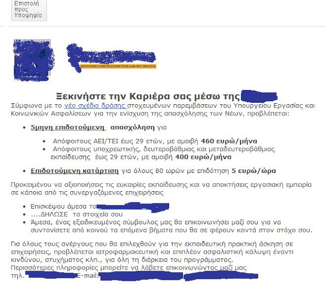 460 μηνιαίως. Μάλιστα θα λάβω αυτό το τεράστιο ποσό επειδή είμαι και απόφοιτη πανεπιστημίου και όλα αυτά με τις ευλογίες, μη σας πω την παρότρυνση και τον σχεδιασμό του Υπουργείου Εργασίας. Φανταστείτε τώρα έναν νέο-νέα έως 29 ετών με 490 ευρώ.