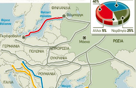Ο αγωγός Nord Stream θα συνδέσει τον Οκτώβριο το ρωσικό δίκτυο με τη Γερμανία, μέσω της Βαλτικής Θάλασσας (1.200 χλμ.). Τα ποσά ενέργειας που θα παρέχει αντιστοιχούν με την παραγωγή ενέργειας 12 πυρηνικών εργοστασίων, τώρα ειδικά που οι Γερμανοί σκέπτονται να εγκαταλείψουν την πυρηνική ενέργεια.