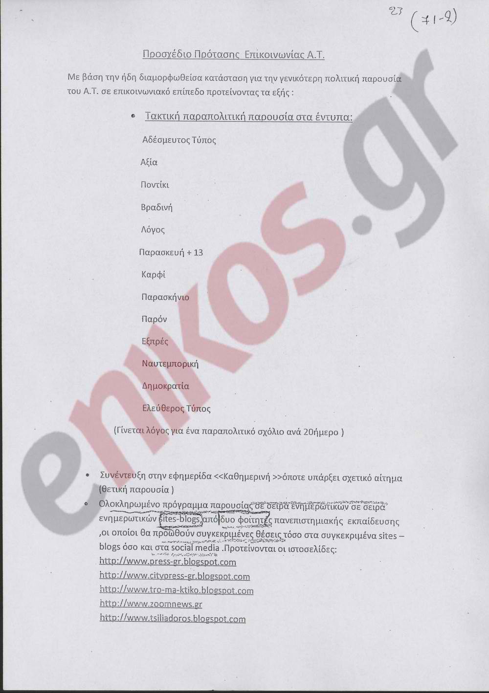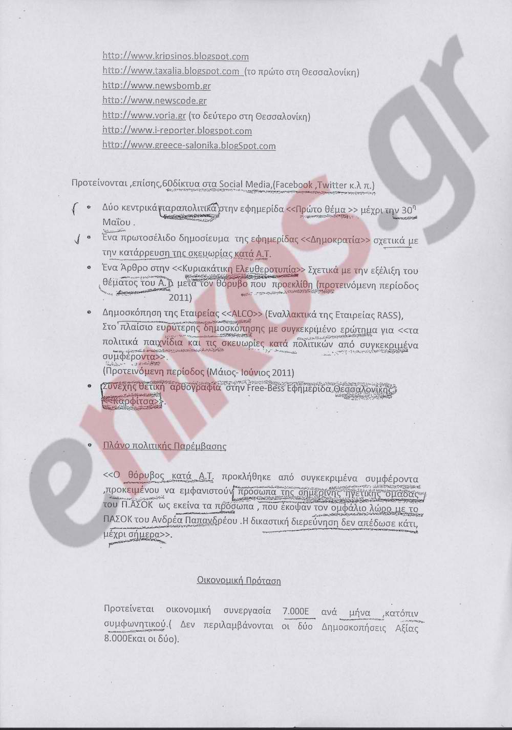 Στο ίδιο σημείωμα συμπεριλαμβάνονται προτάσεις με ονόματα εντύπων και ΜΜΕ, στα οποία θα υπάρξουν παρεμβάσεις αν και εφόσον τηρηθεί η συμφωνία.