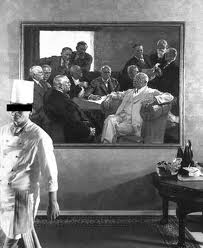 Στην φωτογραφία η οποία έχει τίτλο „το συμβούλιο των θεών“ και βρίσκεται μέχρι σήμερα στο εργοστάσιο της BAYER (στο «Casino») βλέπετε τον τέως διευθυντή της BAYER Carl Duisberg μαζί με τον Carl Bosch και άλλους βιομηχάνους…
