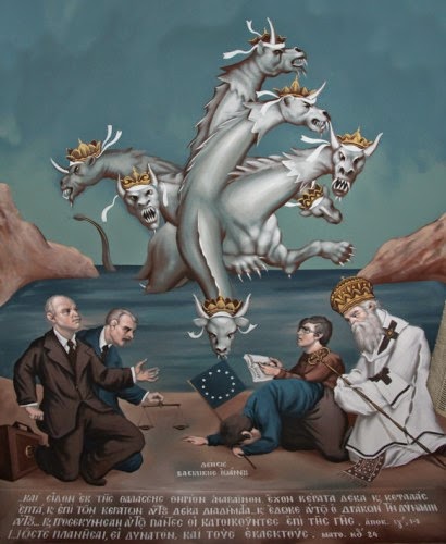 το ενδιαφερον ειναι οτι πισω απο τον πρωην μοναχο παντελεημονα ειναι ενας πινακας εξωφυλο του δισκου των Black Sabbath με 3 αγγελους που φουμαρουν!!! oχαχαχχαχα