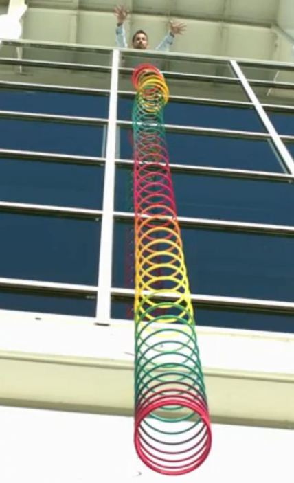 Ένα βίντεο υψηλής ταχύτητας αναδεικνύει την “άρνηση” κατακόρυφων ελατηρίων να υπακούσουν στο νόμο της βαρύτητας. Ελατήρια σε κατακόρυφη διεύθυνση αφήνονται να πέσουν ελεύθερα προς το έδαφος. Ενώ το πάνω τμήμα του ελατηρίου αρχίζει πέφτει κανονικά, το κατώτερο τμήμα παραμένει ακίνητο. Παρακολουθείστε το πείραμα: