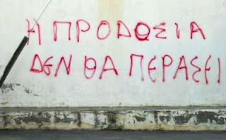 Κι εμείς θα έχουμε χάσει απλά την καλύβα μας, το αρχαίο αυτοκίνητό μας (αν έχουμε), και την ταπεινή και αδέκαρη αλλά τίμια και περήφανη ζωή μας… Εσείς θα χάσετε τις πισίνες, τα πέντε αυτοκίνητα, τις μίζες, τις γκόμενες και τις βίλες μαζί με την εξευτελισμένη, τιποτένια, προδοτική και εκφυλισμένη ζωή σας.