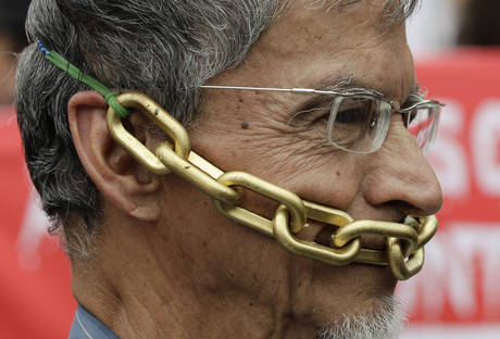 για να εξαλειφθεί σε απευθείας σύνδεση …. η ελεύθερη έκφραση των διαφωνούντων με τις πολιτικές απόψεις της παγκοσμιοποίησης …..
