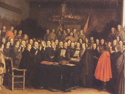 Οι διαπραγματεύσεις διήρκεσαν τέσσερα χρόνια (1644-1648). Τελικά, καθιέρωσαν την ισότητα στις διαπραγματεύσεις μεταξύ όλων των αντιμαχόμενων μερών, είτε καθολικών είτε προτεσταντικών, μοναρχικών ή δημοκρατικών (ρεπουμπλικάνων).