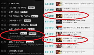 Οἱ τηλεοπτικοὶ σταθμοί, λοιπόν, ΑΝΤ1 καὶ MEGA τὴν ἡμέρα τῆς ἐθνικῆς μας ἐπετείου ἐπέλεξαν νὰ μὴν ἔχουν ΟΥΤΕ ΜΙΑ ἐκπομπὴ σχετικὴ μὲ τὸ ἔπος τοῦ 1940 ἀλλὰ σὲ καμμία περίπτωση δὲν θὰ μποροῦσαν νὰ παραλείψουν νὰ προβάλλουν τὶς καθιερωμένες πλέον τούρκικες σειρές. Μάλιστα ὅπως μπορεῖτε νὰ δεῖτε στὴν διπλανὴ εἰκόνα τὸ MEGA θὰ δείξει τὴν ἴδια ἡ μέρα δύο ἐπεισόδια τῆς τουρκικῆς σειρᾶς «Ἔρωτας καὶ Τιμωρία» μᾶλλον γιὰ νὰ μὴ μείνουμε παραπονεμένοι.
