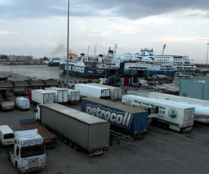 Ένταση προκλήθηκε το Σάββατο στο λιμάνι της Θεσσαλονίκης όταν απεργοί εμπόδισαν φορτηγά μεταφορικών εταιριών να βγουν από το λιμάνι.