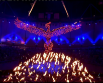 Η εμφάνιση ενός γιγαντιαίου φοίνικα πάνω από τον ολυμπιακό βωμό συνοδεύτηκε μουσικά από τους “Take That”
