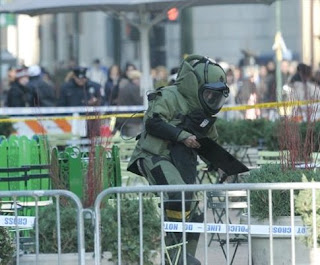 Συναγερμός σήμανε στην τράπεζα Hapoalim, η οποία βρίσκεται στον 11ο όροφο ενός ουρανοξύστη, στην Έκτη Λεωφόρο, στο Μανχάταν, όταν μηχάνημα ακτίνων Χ ανίχνευσε ένα πακέτο ύποπτο ότι περιείχε εκρηκτικό μηχανισμό.