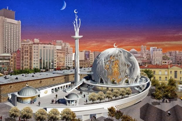 Ξεκινούν να εμφανίζονται τα σχέδια του τεμένους που θέλει να κατασκευάζει ο Ρετζέπ Ταγίπ Ερντογάν στην κεντρική πλατεία Ταξίμ της Κωνσταντινούπολης.