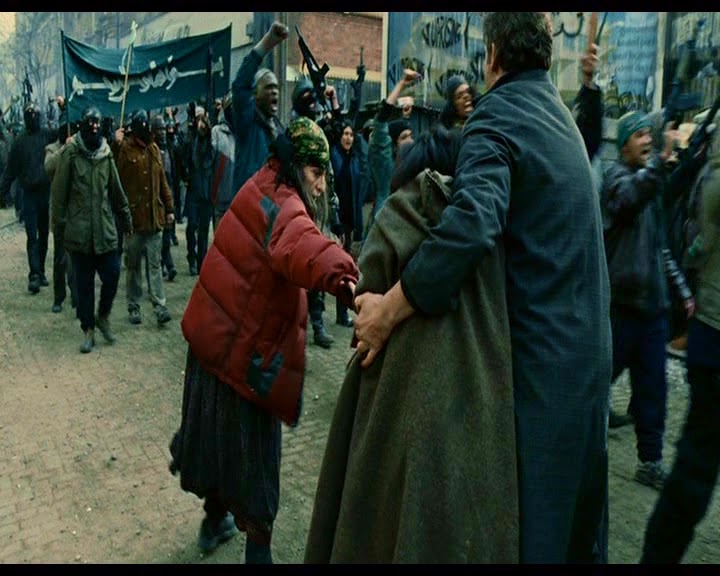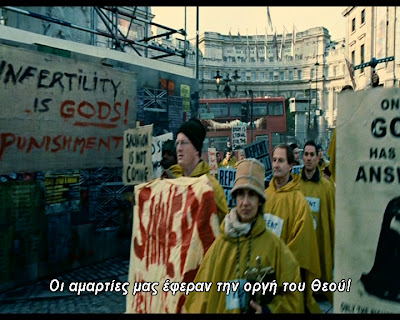 Εκτός να λογαριάζετε ως θρησκευτικό στοιχείο τον τζιχαντισμό. Βλέπετε, η Ιντιφάντα είναι η απάντηση στην αλλά Bush απάνθρωπη μεταναστευτική πολιτική, η οποία συνίσταται στο μπουντρούμιασμα των παράνομων μεταναστών σε καταυλισμούς που μοιάζουν με το Αμπού Γκράιμπ και το Γκουαντάναμο, και όπου το τραγούδι της ναζιστικής εποχής «Arbeit Macht Frei» (‘Η εργασία θα σας ελευθερώσει’) τραγουδιέται (hint hint). Ατό που είναι φοβερό με το μυαλό του Κουαρόν είναι ότι δεν υπάρχει λογική εξήγηση πως είναι δυνατόν τόσοι πολλοί άνθρωποι να ρισκάρουν τη ζωή τους για να έρθουν σε μια Αγγλία που υποφέρει από την ίδια μάστιγα της ατεκνίας, την ρύπανση, τον υπερπληθυσμό, και την καταπίεση».