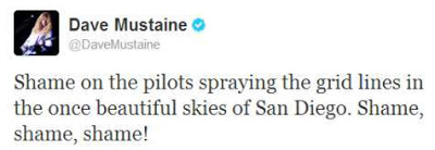 “Ντροπή στους πιλότους που ψεκάζουν τον κάποτε όμορφο ουρανό του San Diego. Ντροπή, ντροπή, ντροπή!”