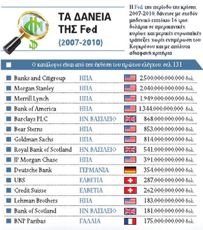 Αυτό που αποκαλύφθηκε κατά τον έλεγχο ήταν εκπληκτικό:16 τρισεκατομμύρια δολάρια έχει μοιράσει η FED σε τράπεζες όλου του κόσμου στην περίοδο 2007-2010