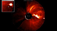 Παρακολουθήστε ένα γιγαντιαίο λαμπερό αντικείμενο που έρχεται κοντά στον Ήλιο και στη συνέχεια, καθώς πλησιάζει προκαλεί μια τεράστια έκρηξη – εκτίναξη. Ότι και να είναι αυτό προκάλεσε κάποια αναταραχή στον Ήλιο για μία στιγμή. Τι μπορεί να ήταν αυτό;