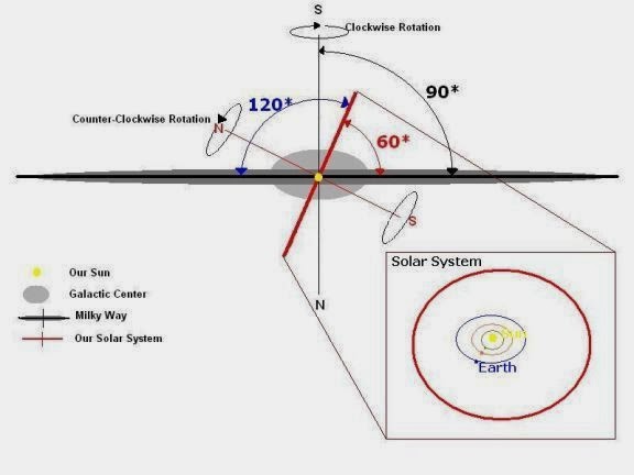 Ο γαλαξίας εχει ενα κεντρικό άξονα και το ηλιακό σύστημα γυρίζει γύρω απο το κέντρο του άξονα.