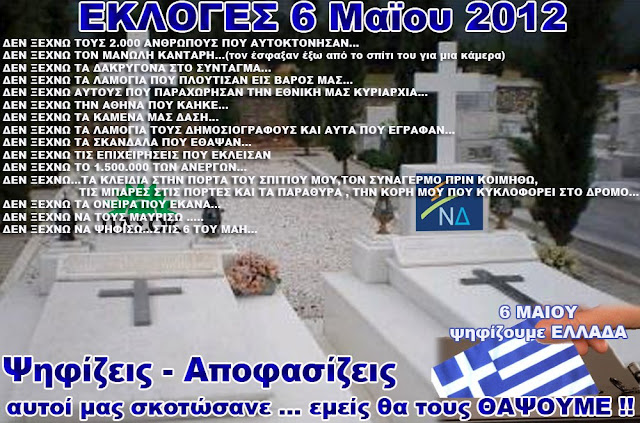 Οι αρχιερείς της καταστροφής και της παράδοσης της χώρας στα νύχια των τοκογλύφων και των εκμεταλλευτών της πλουτοκρατίας και του μεγάλου κεφαλαίου: Ο συγκυβερνήτης Σαμαράς και ο συγκυβερνήτης Βενιζέλος (που αντικατέστησε τον κυβερνήτη Γιωργάκη). Και από δίπλα ο υποκυβερνήτης Καρατζαφέρης, το βοηθητικό προσωπικό, των καταστροφέων της χώρας.