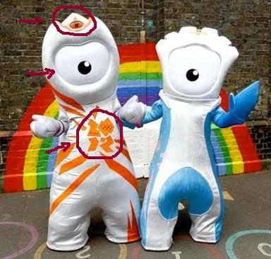 ; η απλά για άλλη μια φορά πέφτουμε θύματα του υποσυνειδήτου  πολέμου της Σιών. Το ένα μάτι είναι το πασίγνωστο σύμβολο των ιλλοουμινατοι που συμβολίζει το ένα μάτι του θεού Horus(αρχαία αιγυπτιακή θεότητα) που καταγράφει την κάθε κίνηση μας και το ρολό των ιλλουμινατοι  που θέλουν να έχουν στη ανθρωπότητα.Επίσης  το φαλλικό σχήμα που δόθηκε στις μασκότ μόνο τυχαίο  δεν μπορεί να είναι  καθώς  το γενετικά όργανα θεωρούντο ότι ποιο ιερό στα πιστεύω τους