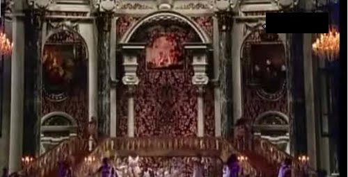 Το στήσιμο της παράστασης είναι πολύ συμβολικό. Η Gaga εκτελεί (το νούμερό της) μέσα σε έναν ναό ή ίσως σε αρχοντικό, γεμάτο με πολυελαίους, στήλες, και πίνακες ζωγραφικής. Οι αποκρυφιστικές τελετές, τα πειράματα ελέγχου του νου, ακόμα και οι ανθρωποθυσίες συνεχώς φημολογείται ότι λαμβάνουν χώρα σε τέτοιου είδους χώρους. Ένα στοιχείο που δεν μπορώ να αγνοήσω είναι η παρουσία των δύο μεγάλων πυλώνων κάτω από μία αψίδα.