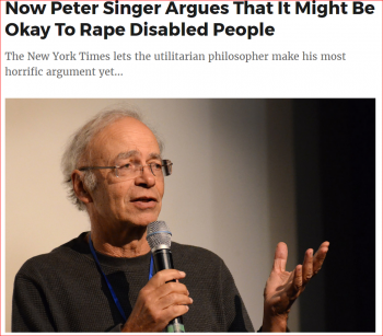 Σε έναν κόσμο στον οποίο κάποιος που μπορεί να κάνει μια μη πολιτικά ορθή δήλωση μπορεί να καταστραφεί, ο Peter Singer θα έπρεπε λογικά, να αποτελεί ένα ανάθεμα, λόγω των πραγματικά απαίσιων πεποιθήσεών του.