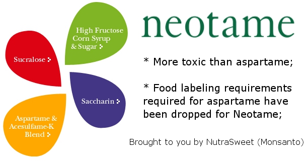 Το 2002 η Μοnsanto πήρε έγκριση απο την FDA ,διεύθυνση τροφίμων και φαρμάκων των Η.Π.Α για την νεοτάμη,ως ενα μόριο βασισμένο στην ασπαρτάμη ,με μια κρίσιμη όμως διαφορά.