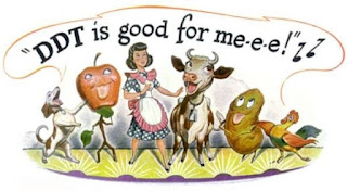 Το χειρότερο όμως με το ddt και του υπόλοιπους χλωριούχους υδρογονάνθρακες είναι ότι δεν καταστρέφονται. Αν, για παράδειγμα, ραντίσουμε ένα χωράφι με τριφύλλι και ταΐσουμε τις κότες μας με αυτό, το ddt  θα βρεθεί στα αυγά τους, από αυτά στο λίπος του ανθρώπου και μέσω του πλακούντα στο έμβρυο –της εγκυμονούσας που έκοψε το κάπνισμα και τον καφέ. Αν κάποιος ανθρωποφάγος φάει το έμβρυο θα πάρει μια καλή δόση από εντομοκτόνο.