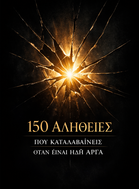 Το «150 Αλήθειες που Καταλαβαίνεις Όταν Είναι Ήδη Αργά» δεν προσφέρει παρηγοριά. Προσφέρει διαύγεια. Και η διαύγεια, όσο σκληρή κι αν είναι, αποτελεί την πρώτη προϋπόθεση για την αληθινή ελευθερία.