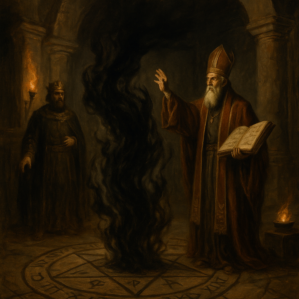 —«Υπάρχουν πράγματα, Μεγαλειότατε, που δεν κατοικούν στο φως ούτε στο σκοτάδι. Είναι… ανάμεσα», τόλμησε να πει ο αρχιερέας, μα η φωνή του έτρεμε.